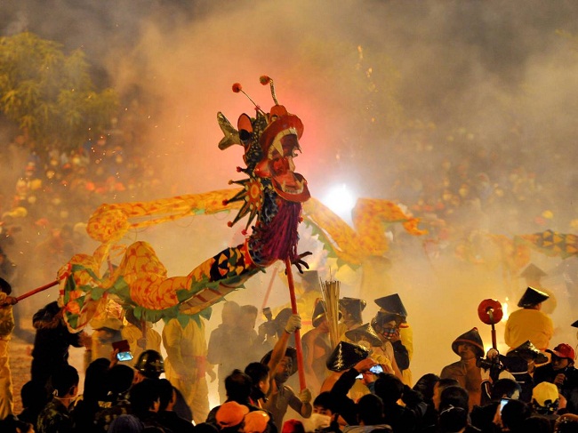 يحتفل الصينيون برأس السنة الصينية في شهر فبراير، والذي يضم إضاءة المصابيح، والألعاب النارية، وأشكال التنين المصنوعة  من الحرير.