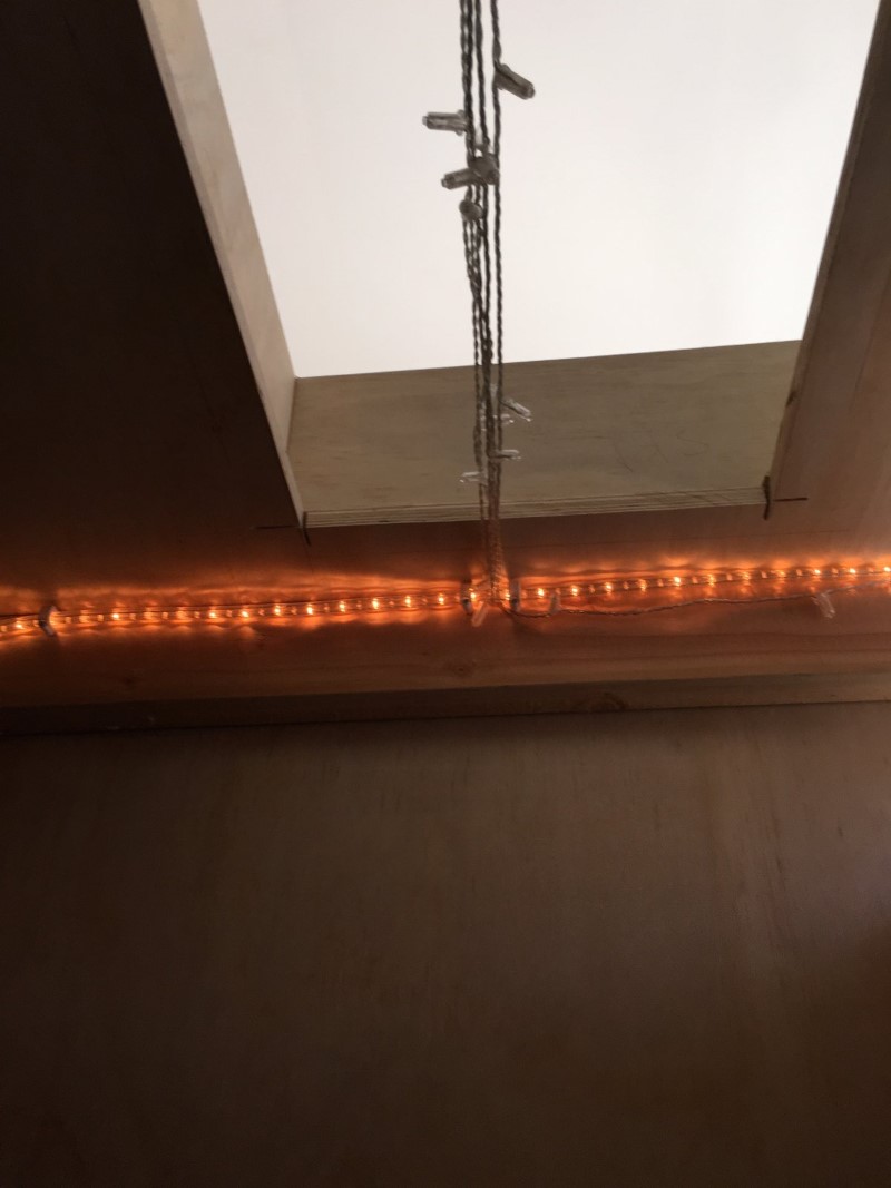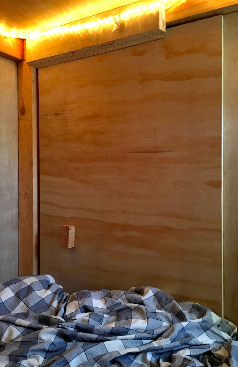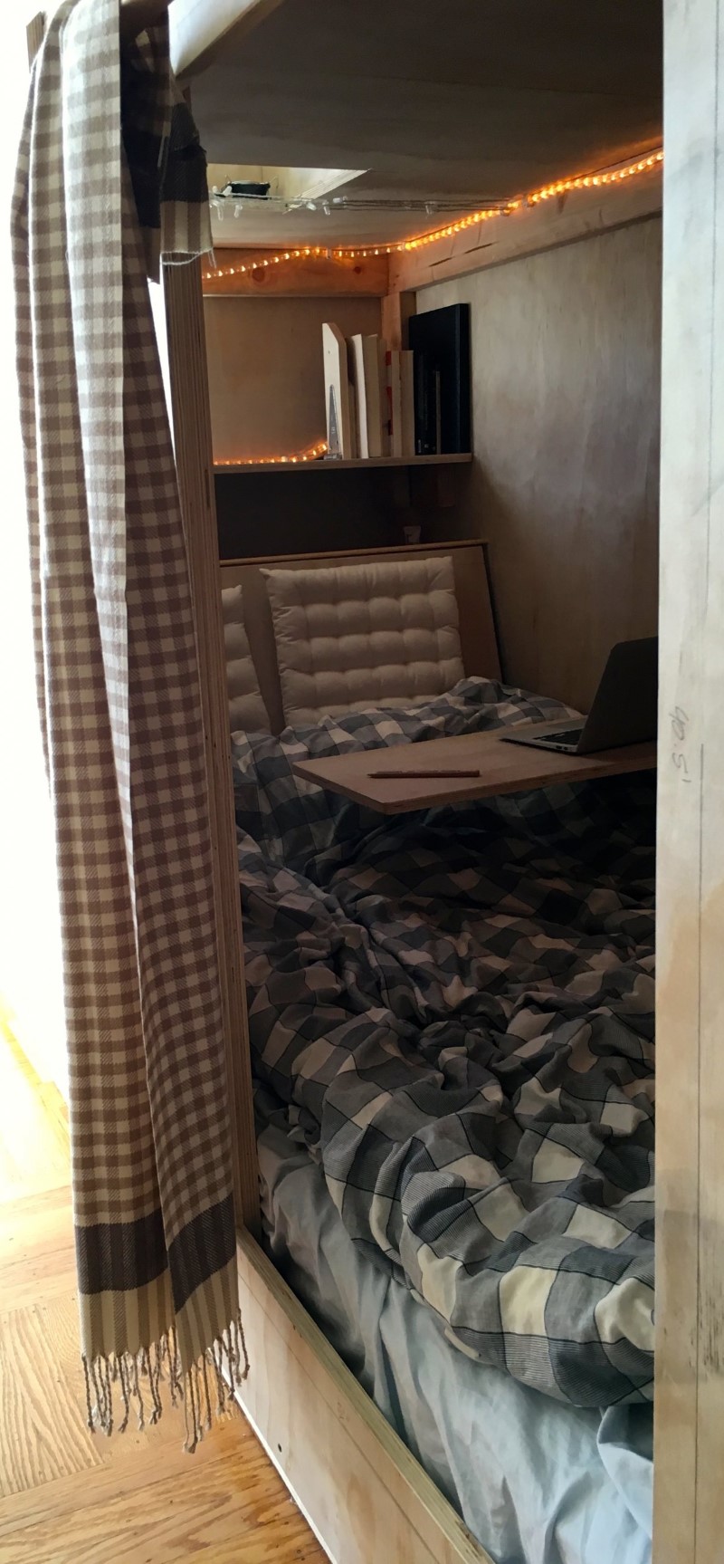 هذه الخزانة تحتوي على مكتب صغير، بالإضافة إلى سرير للنوم، وأضواء LED جميلة.