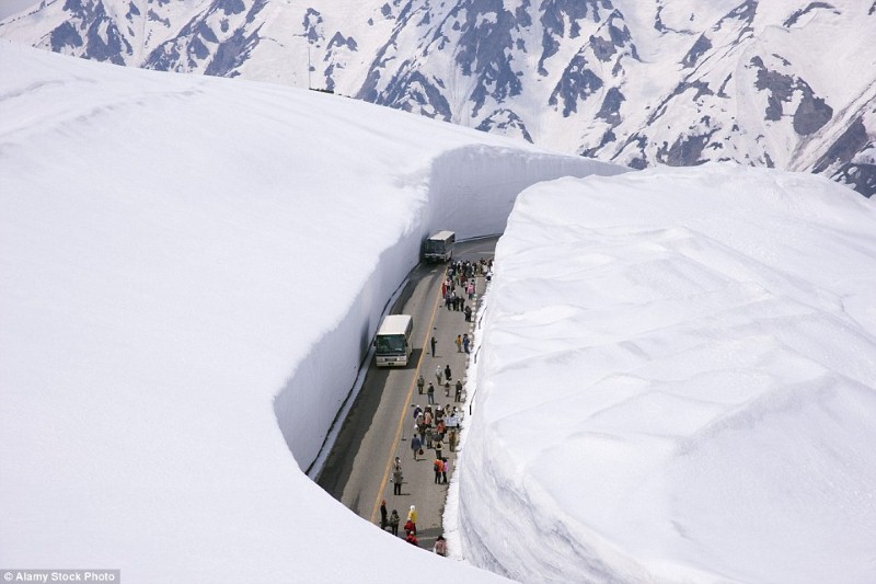 يُفتتح هذا الطريق خلال أوقات محددة من السنة، وهو شارع طويل شق طريقه بين جدران ثلجية مرتفعة. ويُمكن رؤية هذا الطريق المتعرج من شهر أبريل حتى يذوب منتصف الصيف. ويأتي السياح إلى المكان عبر حافلات نقل للاستمتاع برؤية الجدران الجليدية المرتفعة.