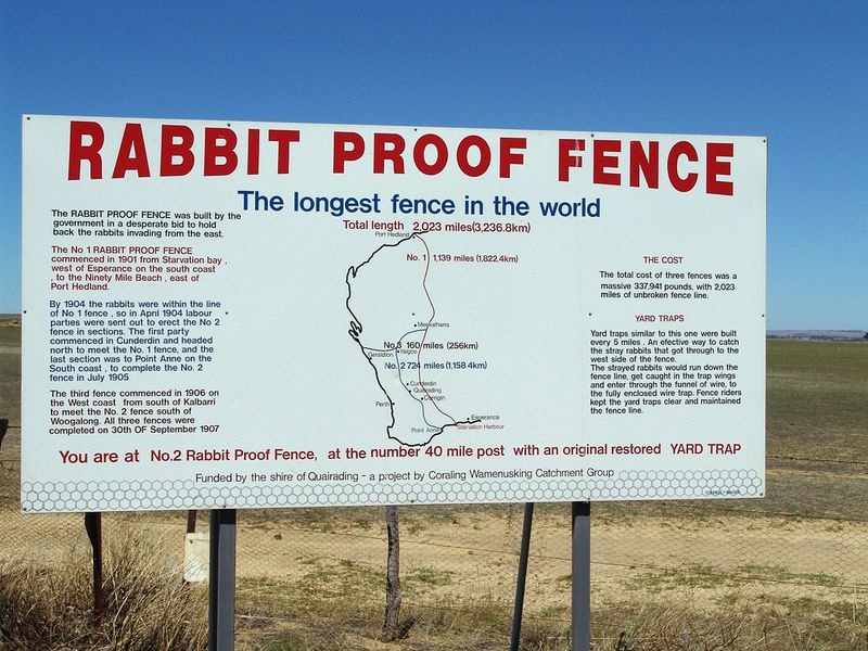 جي بي سي نيوز-: هل كنت تعلم أن أطول سياج كهربائي في العالم وُضع خصيصا لإبعاد الأرانب في أستراليا! إذ يمتد السياج على طول 3256 كم من شمال أستراليا إلى جنوبها ليقسم القارة إلى قسمين غير متساويين. وكان السياج قد شُيّد للمرة الأولى في وقت مبكر من عام 1990s مستهدفًا الأرانب البرية لإبعادها عن الأراضي الزراعية على الجانب الغربي من القارة.