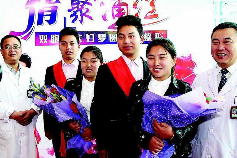 تشاو شين وشقيقه التوأم تشاو شون، من يونتشنغ، في مقاطعة شانشي في الصين، تزوجا من اثنتين من الأخوات التوائم وهما يون فاي ويون يانغ من قرية مجاورة. وعلى الرغم من أنهم يعرفون بعضهم جيداً إلا أنه كان من الصعب تمييز بعضهم بشكل كبير في العديد من مواقف الحياة اليومية.