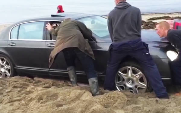 سيارة بنتلي فارهة تعلق (تغرّز) على الشاطئ
