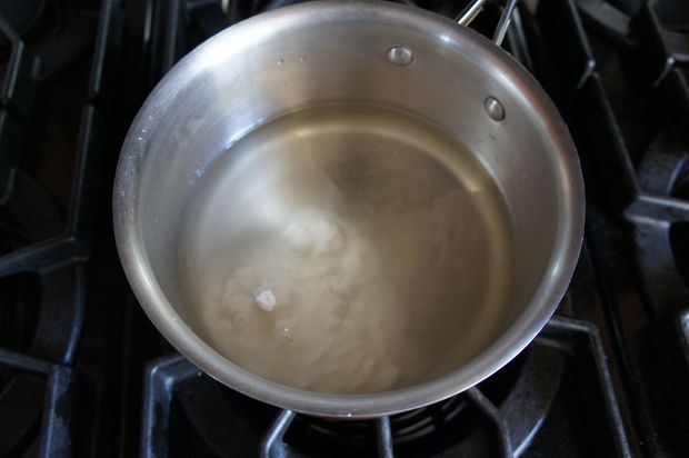 للحصول على هلام البطاطس، صُب الماء المُبرد في وعاء وضع عليه نشا البطاطس، وقم بالتحريك جيداً ليتحول إلى مادة هلامية.