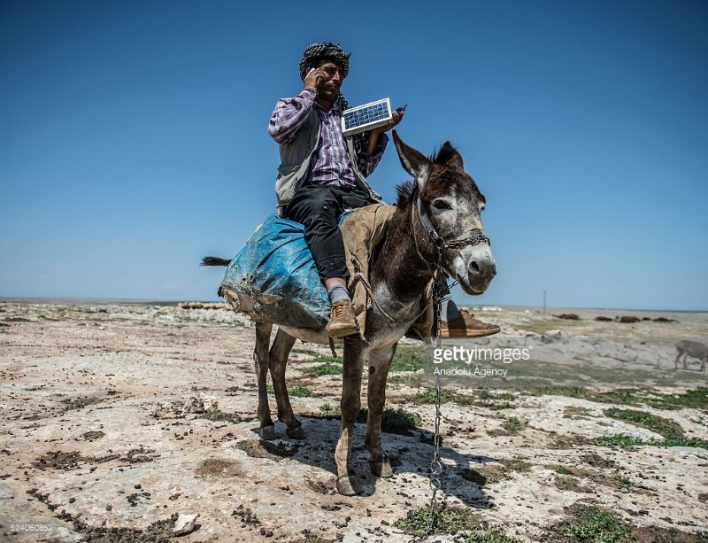 جي بي سي نيوز-: في وقت سابق من هذا الأسبوع، شوهد أحد رعاة الأغنام الأتراك يستخدم الألواح الشمسية على ظهر حماره من أجل شحن هاتفه المحمول. وهذا الأمر لفت انتباه الكثير من الناس بعد نشر صورته بشكل واسع على الانترنت.