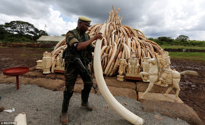في كينيا، وتحديدًا في الحديقة الوطنية في العاصمة الكينية “نيروبي”، قامت الجهات المسؤولة الكينية بتكديس أعمدة من العاج تقدّر تكلفتهم بحوالي 100 مليون دولار أمريكي !!