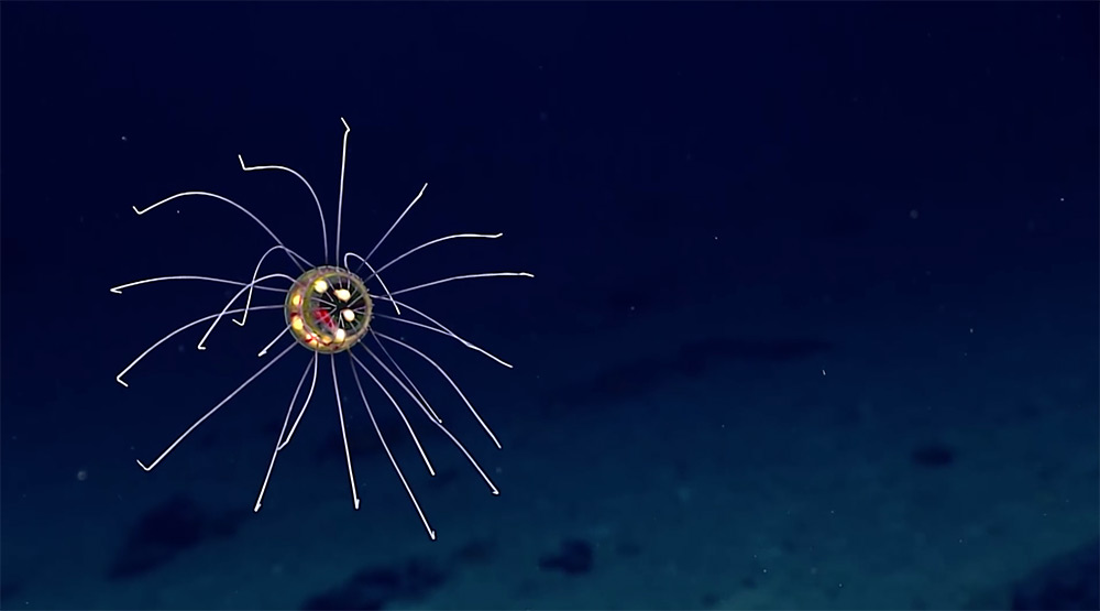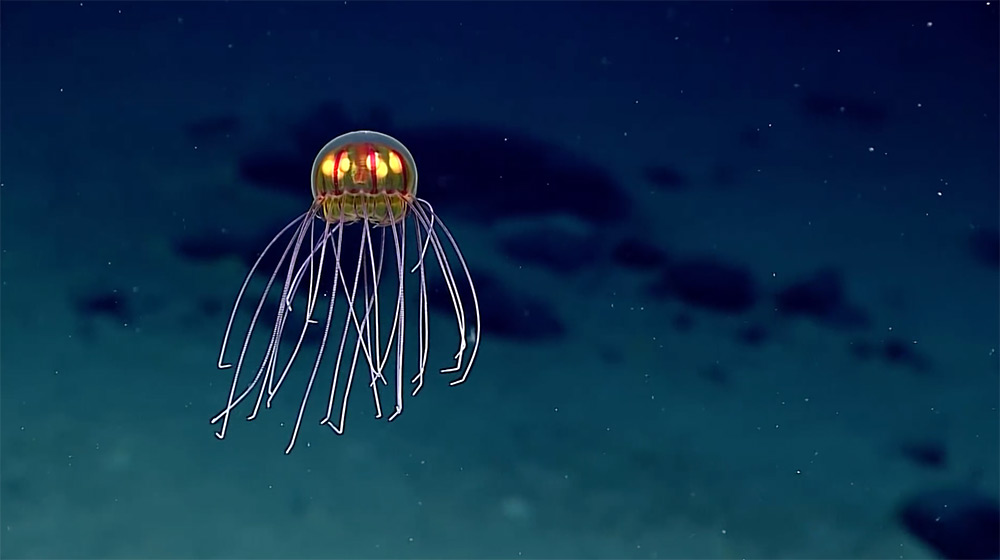 تم تصوير هذا القنديل في خندق ماريانا (أعمق نقطة في سطح الكرة الأرضية وتقع في غرب المحيط الهادي) في شهر أبريل الماضي، وقد أثار شكله اهتمام العلماء والباحثين، نظراً لأنه يمتلك عدد قليل من اللوامس السلكية، و8 كرات براقة داخل جسده. يبدو بأن هذا القنديل شيء من عالم الفوتوشوب، ولكنه حقيقي، ويعيش بكل سعادة على بُعد 2.3 ميل (حوالي 3700 متر) تحت سطح الماء، وفقاً لمجلة ساينتفيك أمريكان.