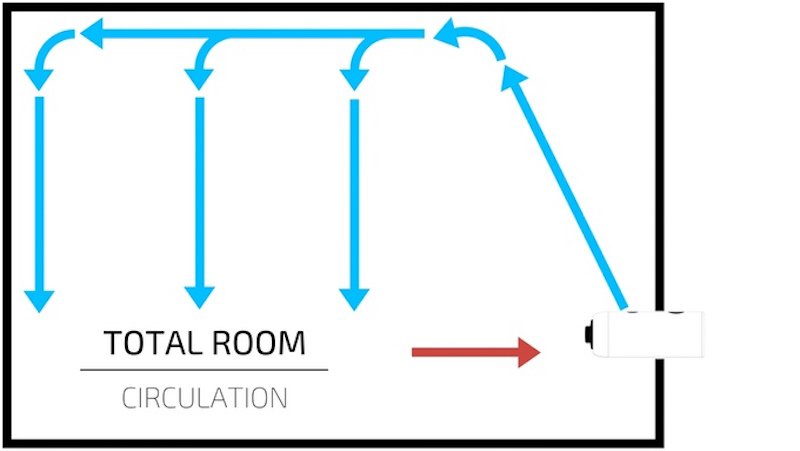 هذا المكيف لا يقوم بتوزيع الهواء بشكل جانبي مباشرة، وإنما يقوم بتوزيعه إلى الأعلى ومن ثم إلى باقي الغرفة.