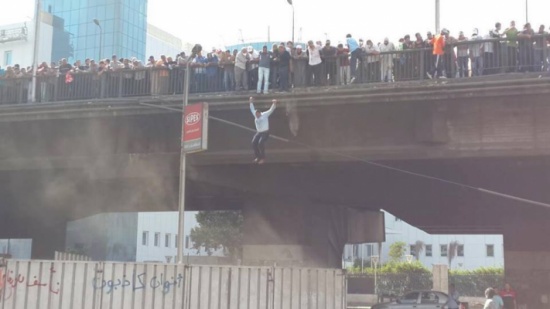 متظاهرون يقفزون من كوبري 6 اكتوبر هربا من رصاص الامن المركزي