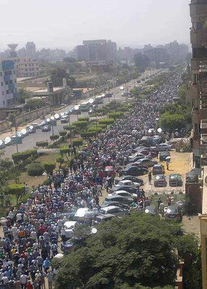 مئات الآلاف الآن أمام مسجد الحصري 6 أكتوبر في أنتظار مسيرات قادمه من مساجد اخرى وطائرات الجيش تحوم فوق المكان
