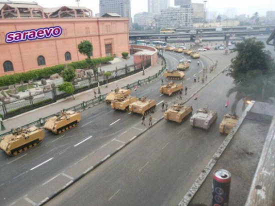 انتشار مدرعات الجيش المصري على كورنيش النيل بالقرب من التلفزيون