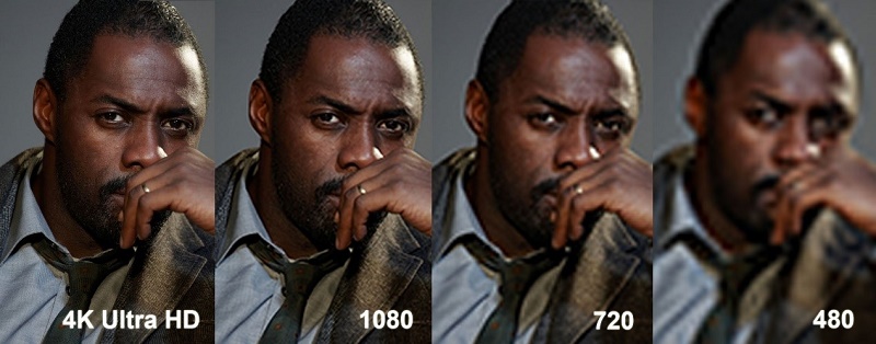وفي هذه الصورة مثال على صورة تم اقتطاعها وتكبيرها من أكثر من مصدر، الأول 480 والأخير هو 4K والذي يساوي تقريبًا 4 أضعاف 1080.