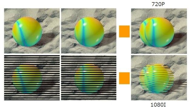 أما بالنسبة للوضوح صاحب حرف ال I، فإن هذا يرمز للفيديو الذي يعتمد على ما يسمى بالحقول في عرض الفيديو، حيث أن الفيديو في هذه الحالة يكون عبارة عن 50 إلى 60 إطار، ولكن كل إطار عبارة عن نصف صورة، وتكون كل نصف صورة مقسّمة بحيث تكون خط أفقي من الصورة الأولى وخط أفقي من الصورة الثانية، وبعد ذلك يتم تجميع الفيديو.