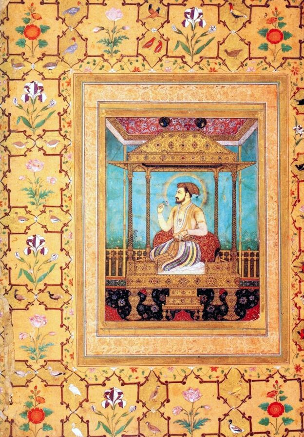 شاه جهان يجلي على العرش الطاووسي المليء بالمجوهرات