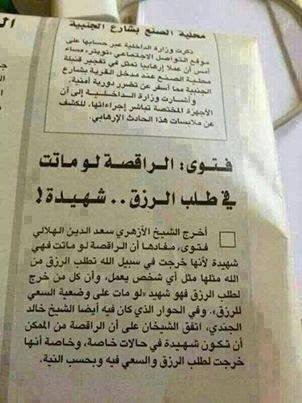 جي بي سي نيوز :-  أفتى الشيخ الأزهري سعد الدين الهلالي بفتوة، مفادها أن الراقصة لو ماتت فهي شهيدة لأنها خرجت في سبيل الله تطلب الرزق من الله مثلها مثل أي شخص يعمل، وأن كل من خرج لطلب الرزق فهو شهيد «لو مات على وضعية السعي للرزق».