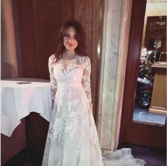 وكان اليوم المرتقب يوم أمس، حيث ظهرت العروس في المحكمة، مرتدية بدلة بيضاء اللون. وفي المساء، ارتدت العروس ثوب زفاف فاخر من تصميم زهير مراد، وزينت شعرها بتاجٍ ثمين، وخاتم من كارتييه. وأقيم الاحتفال في وسط موسكو، بحضور 60 ضيفا فقط.