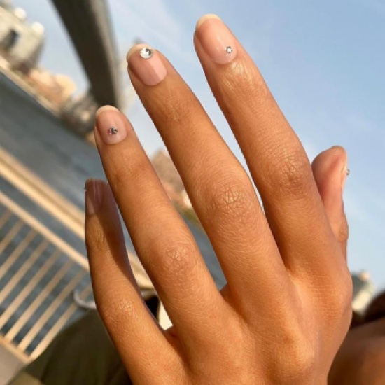 تُعتبر الأظافر المرصعة موضة شتاء 2020، وهو موديل أظافر أنيق جداً وناعم في الوقت نفسه، وبإمكانك الحصول عليه في المنزل، بحيث تقومين أولاً بتطبيق المناكير الشفاف على كامل الأظافر، ومن بعدها مباشرة تلصقين أحجار الراين على أظافرك بطريقة متناسقة بعيداً عن المبالغة. ننصحك باستخدام Nails Inc. NailPure Top Coat و China Glaze Gleam Team Stud Rhinestone Kit.