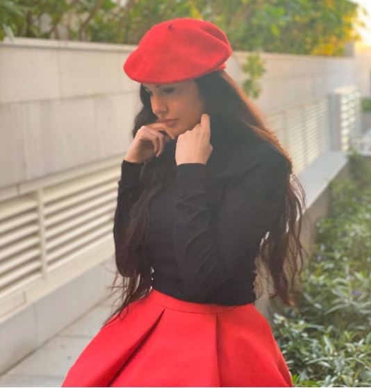 بالأحمر والأسود القصير.. جلسة تصوير جديدة لـ لاميتا فرنجية
