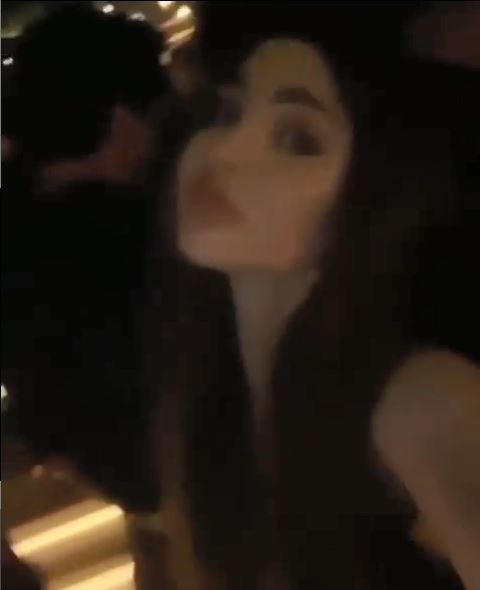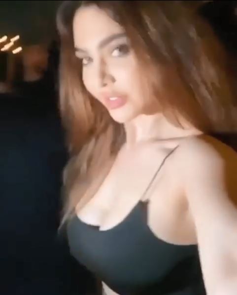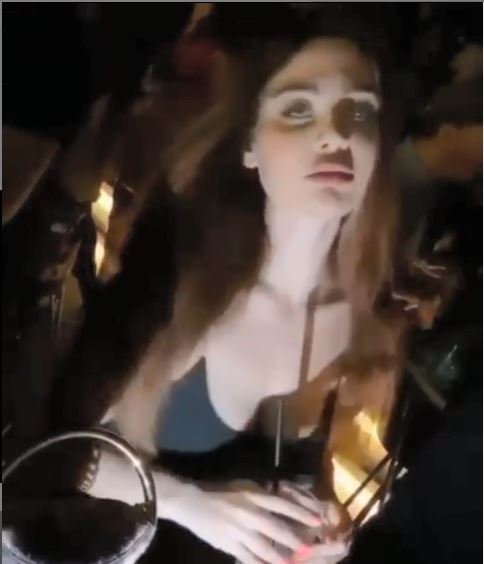 وأطلت بتوب اسود قصير مكشوف الصدر وهي ترقص داخل احد المحال .