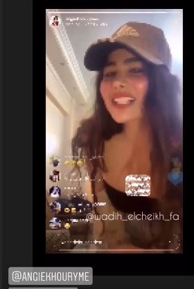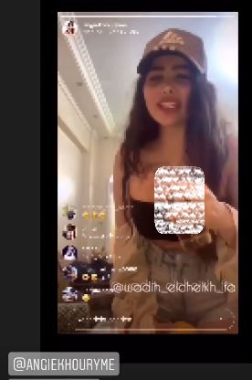 وظهرت انجي خوري على انستقرام وهي مرتدية فستان قصير مكشوف الصدر .